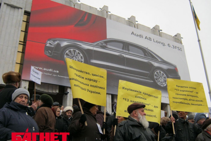 2 марта в Киеве возле Украинского Дома прошла акция протеста обманутых вкладчиков кредитных и финансовых союзов. Отметим, что в это время в здании как раз начинался Первый всеукраинский съезд потребителей финансовых услуг, на котором должны были присутствовать чиновники Министерства Финансов и НБУ. Около сотни митингующих, требующих возврата своих денег, выстроились на ступенях, тем самым практически перекрыв доступ ко входу.