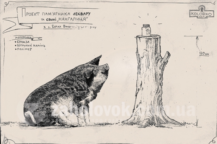 Вскоре коллекция оригинальных памятников в Закарпатье пополнится еще одним интересным экспонатом. В селе Ботар Виноградовского района будет установлена скульптурная композиция «Свинья и леквар» (леквар – это повидло). Об этом сообщили региональные издания.