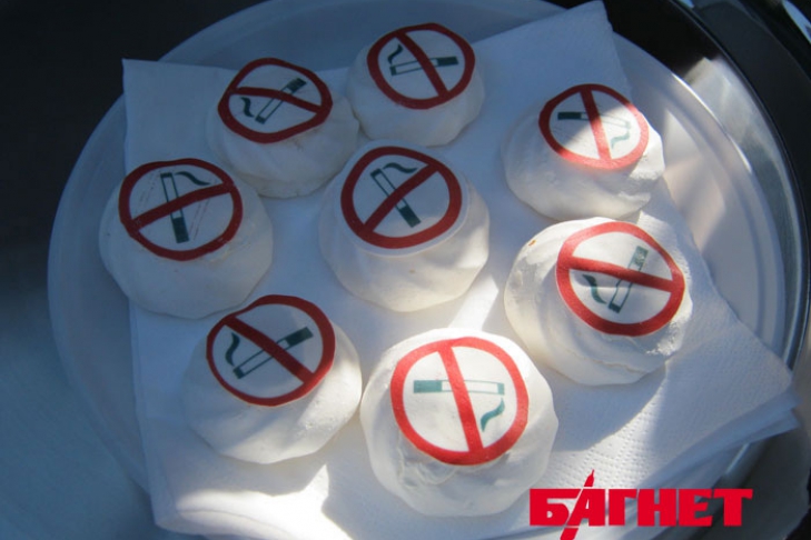 Во вторник, 13 марта в Киеве возле Верховной Рады Украины собрались активиста «антитабачных» движений, которые призывали народных депутатов проголосовать за законопроект о запрете курения в заведениях общественного питания достаточно оригинальным способом. Как уже сообщал «Багнет» этим утром нардепов, идущих на работу, встречали официанты с кофе и пирожными. Сладости были выполнены в виде знака «курить запрещено», а на стаканчиках красовалась надпись «Кофе пахнет, а сигареты воняют!».
