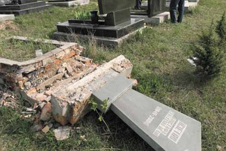 По его словам, вандалы разгромили памятники и проехали на автомобиле по свежим могилам.