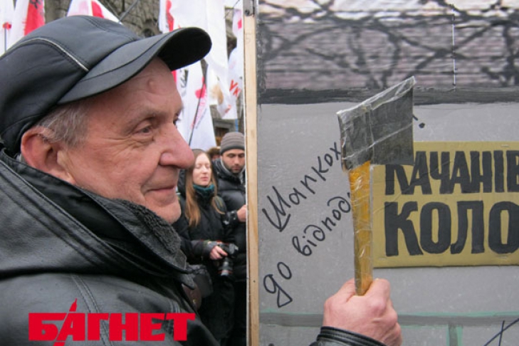 28 марта на улице Банковой в Киеве Киевская «Батькивщина» собрала на акцию протеста столичных сторонников Юлии Тимошенко. Стоит отметить, что протестующие, основным требованием которых было прекратить издевательства над экс-премьером, прибегли к своеобразному топорному креативу.