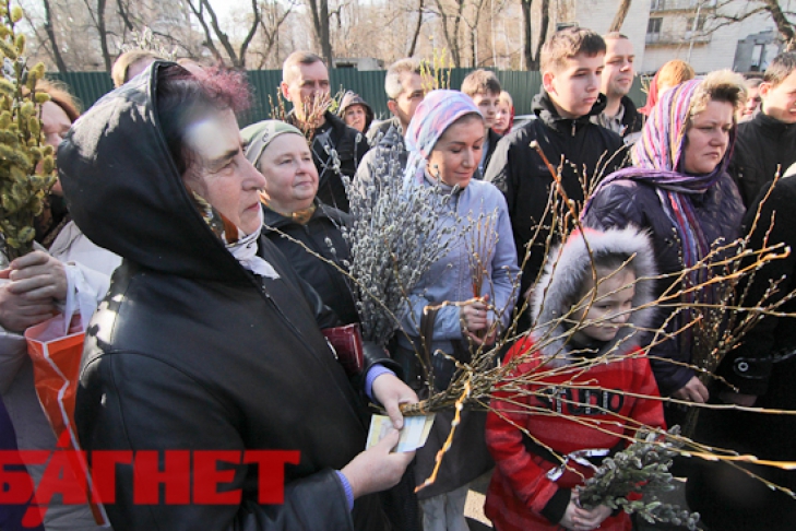 Предлагаем фоторепортаж: утро Вербного воскресенья, 8 апреля, Киев, Покровский собор.