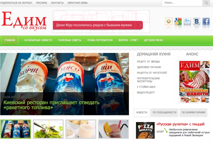Сайт «Едим со вкусом» давно снабжает украинских хозяюшек вкусными рецептами и имеет большое количество поклонников во всех уголках Украины. Тут читатели могут найти необычно аппетитные рецепты, последние новости из мира кулинарии и питания. Так же на сайте шеф-повара лучших ресторанов делятся полезными советами по приготовлению и оформлению блюд. А рубрика «Потребительские экспертизы» поможет разобраться и не растеряться при выборе бытовой техники.