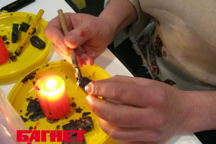 Но сейчас, как правило, используют просто пустую скорлупу. Отметим, что писанки, в отличие от крашанок, употреблять в пищу ни в коем случае нельзя. Они являются символами Пасхи, которые традиционно должны сохраняться возле икон. Также для того, чтобы сделать писанку нужно будет обзавестись писачком (специальное приспособление, которое можно найти в художественных магазинах), свечками, красителями и воском. Вообще-то воск можно брать любой, но Алеся Токарская пользуется специально окрашенным в черный цвет воском, с которым намного легче работать.