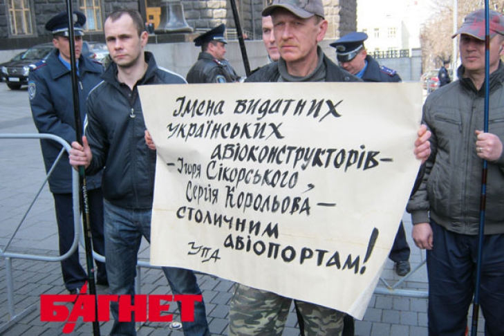 12 апреля (во Всемирный день авиации и космонавтики), у здания Кабинета министров Украины представители украинских патриотических и националистических организаций провели акцию протеста против разрушения отечественной авиакосмической отрасли. Активисты митинговали против приватизации предприятий отрасли. Также протестующие выразили идею того, чтобы назвать аэропорт «Жуляны» в честь выдающегося украинца Сергея Королева или других не менее знаменитых авиаконструкторов. Националисты сетуют, что на сегодня многие имена забыты, а отрасль находится в упадке.