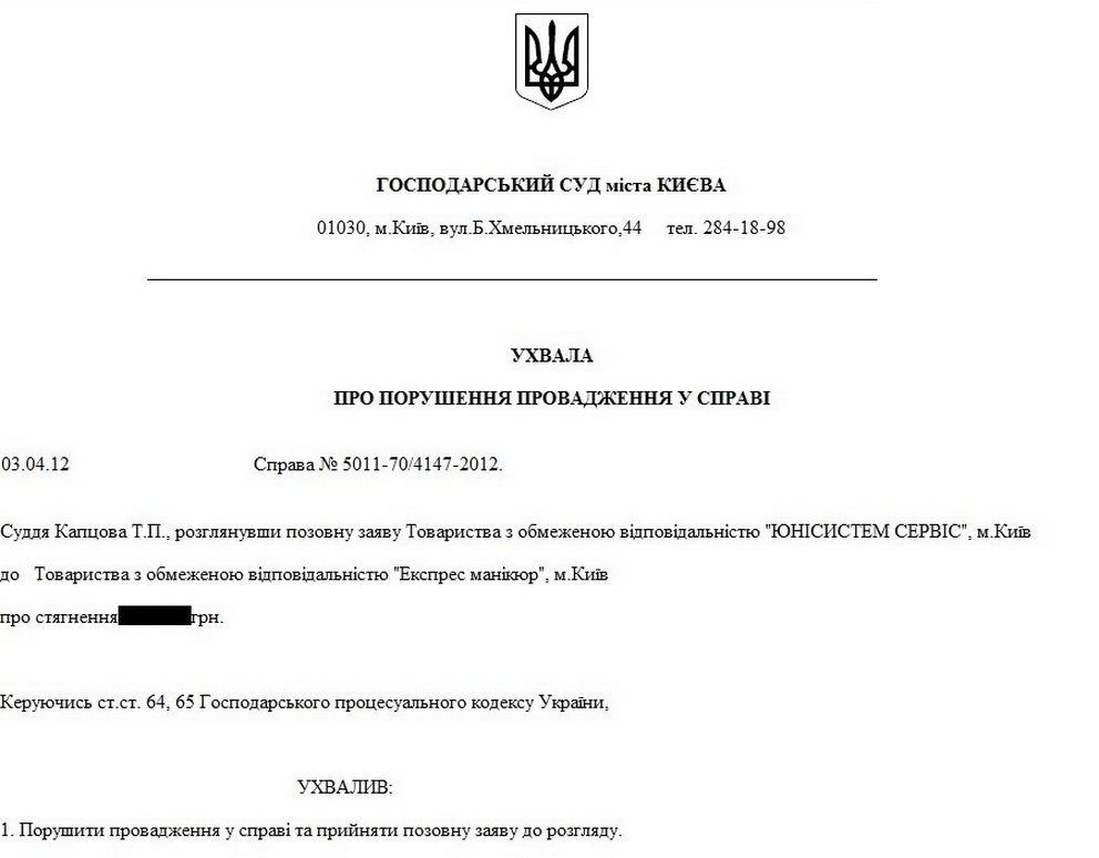 «Прощаю всем, кому я должна!»- видимо этим принципом руководствуется «хозяйка» «Экспресс маникюр» Елена Липовская. Среди тех, кому задолжали подручные Елены Григорьевны, помимо ФОП Светланы И., оказалась и киевская фирма «ЮНИСИСТЕМ СЕРВИС». В течение 2011 года специалисты предприятия оказывали услуги по обслуживанию нефискальных кассовых аппаратов на маникюрных стойках франчайзинговой сети. Работы выполнили - деньги не получили, теперь предстоят судебные разбирательства. Почему- то, когда речь заходит об «Экспресс маникюр», такая ситуация уже не удивляет…