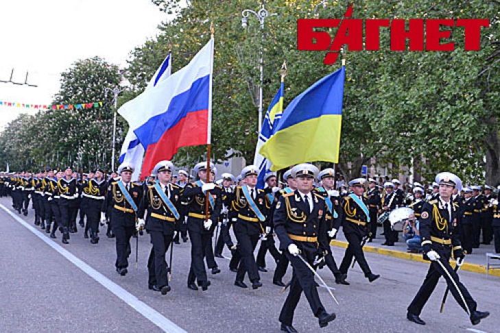 Всего в парадном строю прошло около двух тысяч военнослужащих двух стран, которые служат в воинских частях Севастопольского гарнизона. По сложившейся за много лет традиции российские и украинские военные шли торжественным маршем в едином строю.