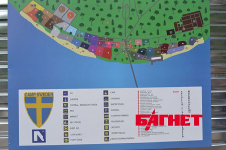 Вообще некоторые решения КП «Плесcо», фирмы, занимающейся «строительством» кемпинга, удивляют и, откровенно говоря, вводят в ступор. Например, одним из немногих объектов в кемпинге, которые были завершены полностью, оказалось... поле для пейнтбола. Сложилось впечатление, что, по мнению киевских чиновников, пейнтбол для европейских футбольных фанатов дело более необходимое, нежели душ или туалет. Или же кафе и рестораны. Которых тоже, кстати, как не было, так и нет. Или, взять, например, вот такую вот вывеску...