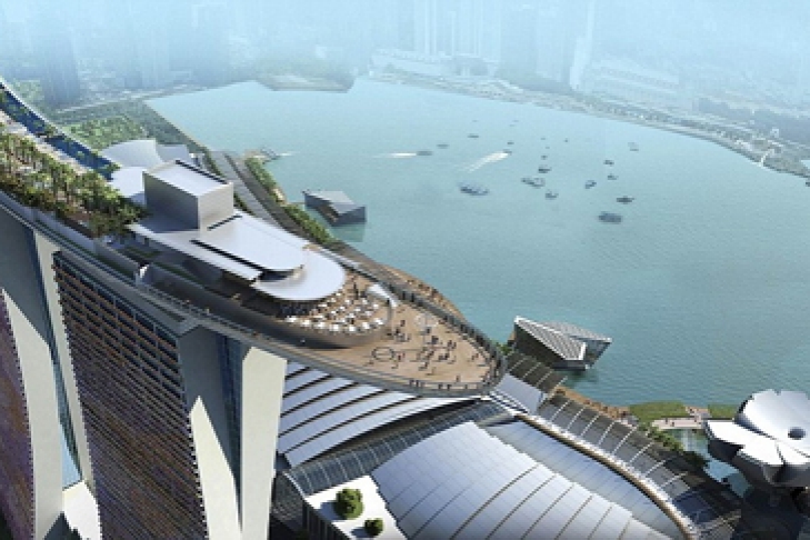 Здание было построено сравнительно недавно, в 2011-м году. Его создатели, видимо, не захотели ломать голову, чтобы придать будущему отелю вид корабля, а потому просто-напросто водрузили морской лайнер на крышу здания. Интересно, что 2 560 номеров вместе с кинотеатрами, магазинами, казино и миниатюрным каналом с гондолами на манер тех, что популярны в Венеции, размещены на 55-ти этажах. Также на верхней палубе корабля находится огромный бассейн с водопадами. На создание проекта потратили 8 миллиардов долларов. Полюбоваться «корабликом», размещенным на крыше шикарного отеля, можно на фото 1, 2, 3 в галерее внизу.