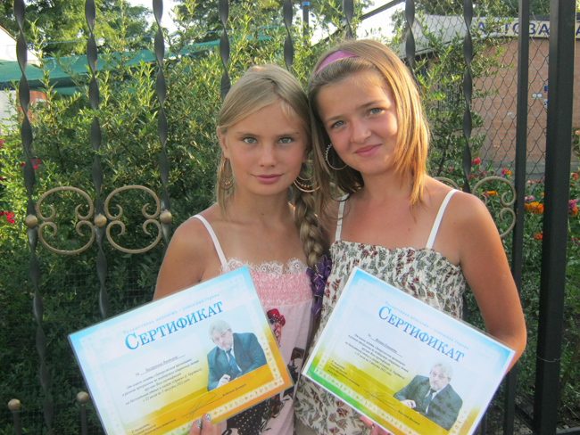Басарукина Виктория и Елизавета Фокина из с.Московка Вольнянского района демонстрируют сертификаты на оздоровление и отдых в рамках благотворительной акции «Талантливая молодежь – успешная страна»