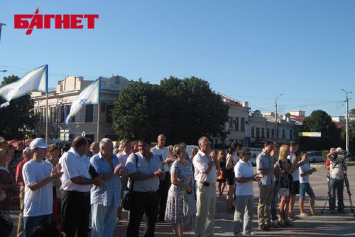 Организовано действо было Министерством образования и науки, молодежи и спорта Крыма. На мероприятие собрались около пятидесяти человек, разморенных июльским зноем. Среди присутствующих можно было заметить много сотрудников министерства, которых буквально сорвали с рабочих мест для создания кучности.