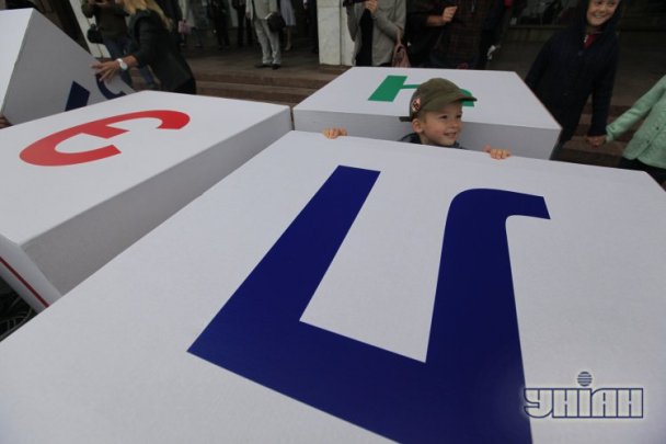 В Киеве на Европейской площади дети составили огромную азбуку из гигантских кубиков. Об этом пишут украинские СМИ.