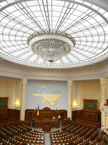 Конструкции купола составлены из металла, стекла обычного и цветного, причем сам диаметр плафона – 16 метров. Учитывая высоту конструкции (около 10 метров), площадь стеклянной поверхности составляет не менее 500 «квадратов». А поскольку толщина стекла - минимум сантиметр (ведь оно должно выдерживать зимние снегопады и градины диаметром в полтора-два сантиметра), над головой нардепов находится до пятнадцати тонн стекла и металла. А с учетом веса металлического шпиля на крыше и хрустальной люстры в форме подсолнечника, которая висит под куполом, - общая масса конструкции 40 тонн.