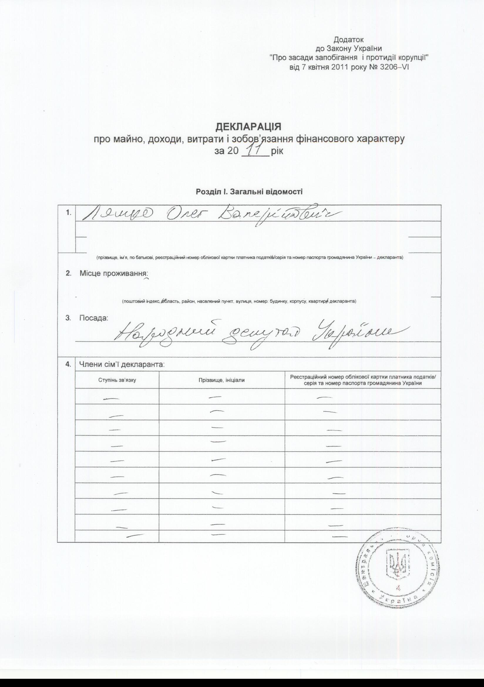 У Ляшка за декларацією «зникли» дружина і дитина (ДОКУМЕНТ)