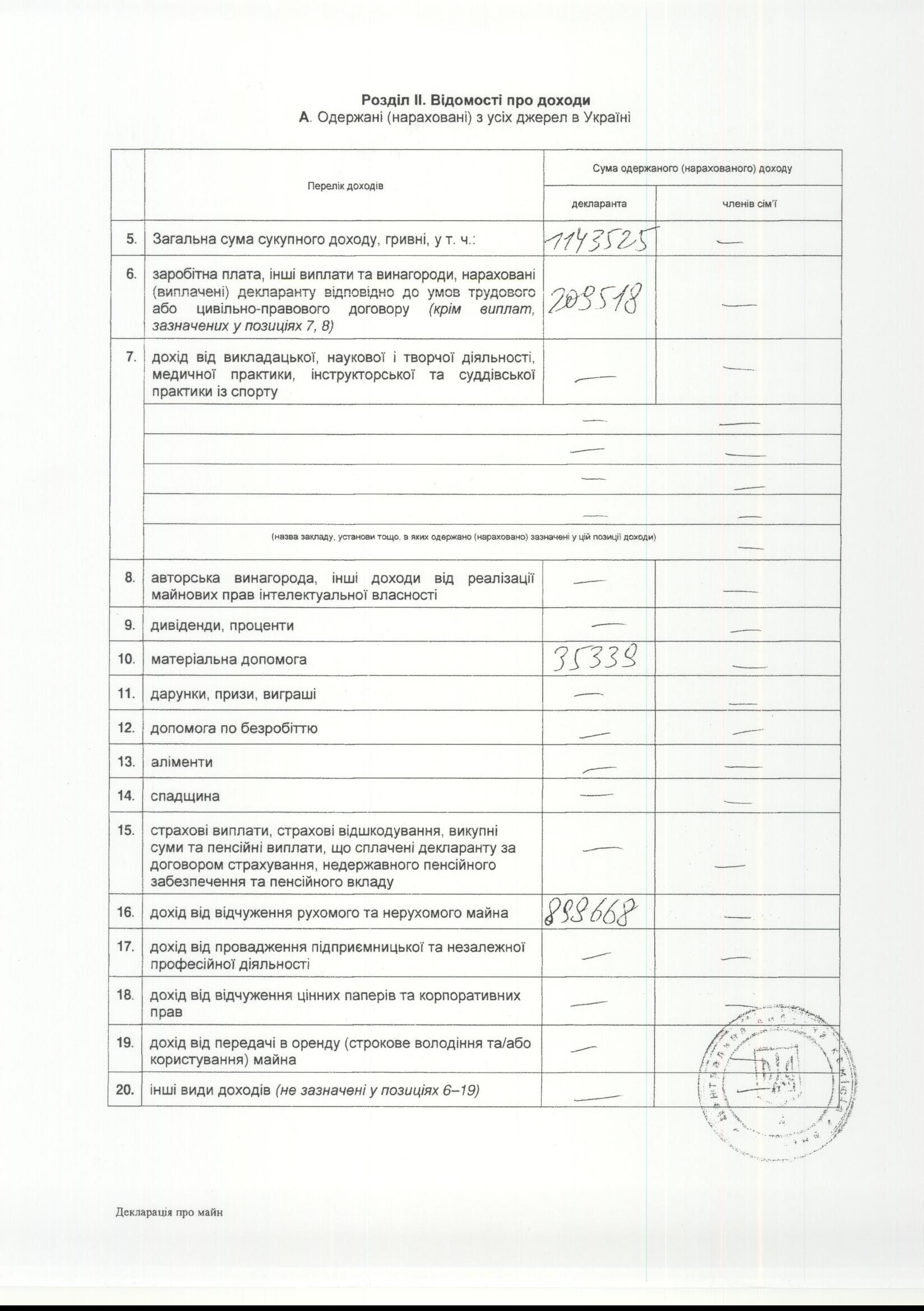 Грошей Ляшко теж трохи задекларував. Як він самостійно написав, то отримав в 2011 році – 1 мільйон 145 тис.525 гривень. З яких, 209 тис.518 грн. склала його депутатська зарплатня, 898 тис. 668 грн. від відчуження якогось майна.
