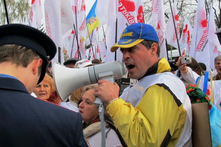 Между сторонниками и противниками Тимошенко стоит шеренга милиционеров. По данным правоохранителей, в обеих акциях принимают участие до 2 тыс. человек.
