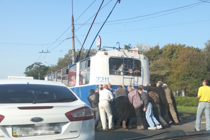 В Донецке пассажиры от безысходности начали толкать троллейбус (ФОТО)