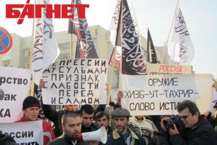 Митингующие выкрикивали традиционное «Аллах-Акбар» и держали в руках плакаты с надписями «О, Аллах, обрушь свой гнев на угнетателей», «Путин = Сталин = Тиран», «Россия прекрати свои зверства против мусульман», «Диктаторство – признак упадка», «Мусульмане России мы с вами», «Власть России тебе не отвратить Хизб-ут-Тахрир от призыва» и другие. Исламисты собрались, чтобы высказать свой протест против массовых арестов представителей Хизб-ут-Тахрир в России.