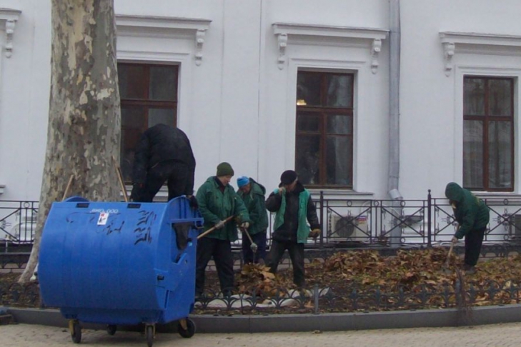 В Одессе работники коммунальных служб ради экономии места в альтфатере (мусорном баке) залезают в них и притаптывают мусор. Об этом пишут региональные СМИ.