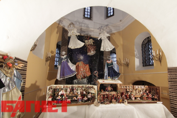 На выставке представлены вертепы начиная от «примитивов», - изготовленных сельскими мастерами из ткани, дерева, бумаги, - и до почти ювелирных изделий, куклы, которые созданы из керамики и даже янтаря.