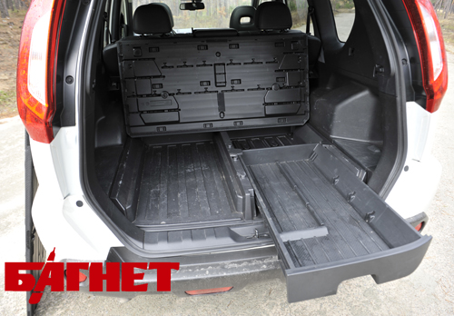Огромный багажник имеет тройное дно – под первым можно найти выдвижной ящик и несколько отделений для мелочей, а еще ниже – запаску. А ключи и домкрат, что приятно, можно выудить из боковых ниш, не выгружая содержимое багажника.
