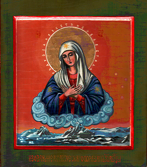 И икона была написана мастерами Криворожской иконописной школы с благословения архиепископа Криворожского и Никопольского Ефрема. Затем икону освятил митрополит Днепропетровский и Павлоградский Ириней, а архиепископ Ефрем в присутствии властей города и области передал её Николаю Макавею, который весной 2011 года в составе сезонной экспедиции в Антарктиду привёз икону на станцию «Академик Вернадский».