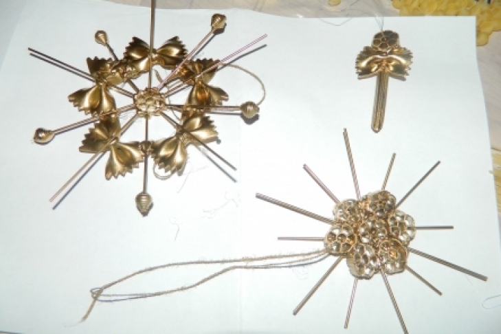 «Десять минут - и изделие готово. Это нетрудно и совсем недорого, - продолжает девушка. - Для изготовления 10 звезд и 10 ангелочков материалов нужно закупить на 50 гривен. Макароны надо брать разных видов - бантики, спагетти, мюшли, кружочки. А еще понадобится приобрести горячий клей, золотистую краску и ленты».