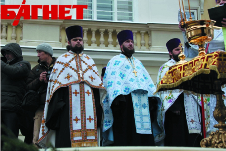 Во Львове по поводу праздника Крещения Господнего у помещения Львовского городского совета состоялось освящение двух тонн воды священниками большинства конфессий, зарегистрированных во Львове.