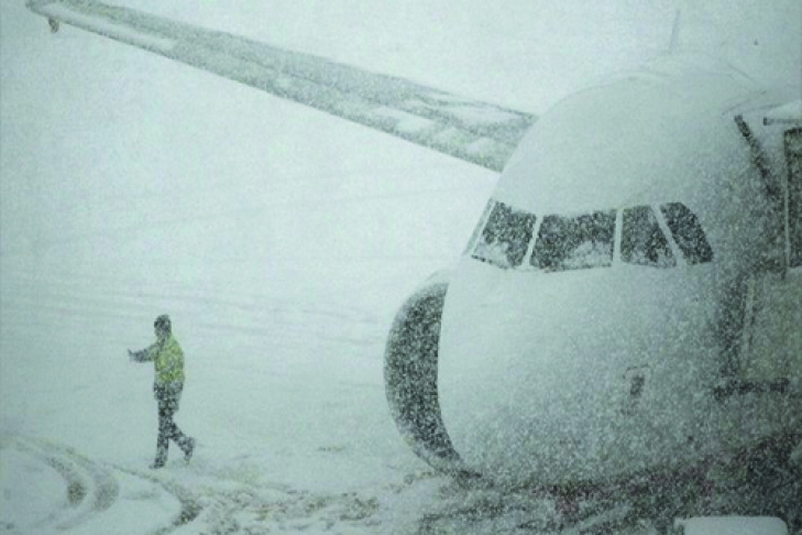 Связано это с покрытием взлетно-посадочной полосы и перрона льдом и снегом