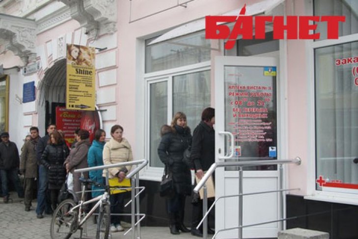 Участники акции, среди которых пациенты с различными заболеваниями, врачи, выстроились в длинную очередь перед одной из аптек города, которая символизировала угрозу дефицита импортных лекарственных препаратов после вступления закона в силу.