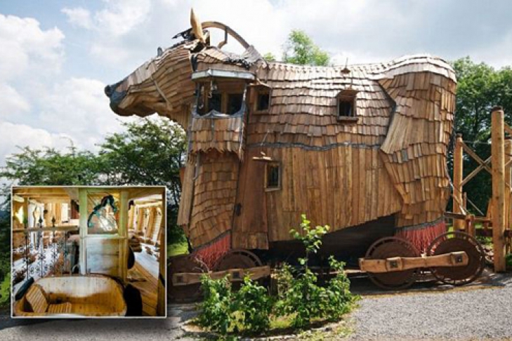 Троянский красавец расположен на территории курортного комплекса La Balade Des Gnomes вблизи городка Дюрбуи, что в Бельгии. Владелец чудо-отеля Доминик Ноель (Dominique Noel) говорит, что его троянский конь понравится любителям природы, мифов и детских сказок.