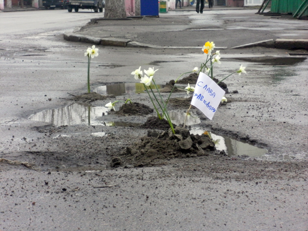Цель акции - напомнить властям и коммунальщикам о проблемах дорожного покрытия