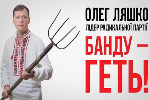 Политик не боится сказать «крепкое словцо» своим политическим оппонентам. Он любит устраивать театрализованные акции протеста. Ярчайшая ассоциация, которую использует Олег Ляшко – это атрибутика села: корова, обычные вила, куриные яйца. Словесное сопровождение соответствующее: «Мы этих паразитов (депутатов ВРУ, - прим. Авт.) вилами будем колоть», «Украина начинается с коровы», «Верховная Рада – это курятник». При этом Ляшко не забывает на показ устраивать акции меценатства: то подарит свою норковую шапку бомжу, то призывает депутатов продать свои туфли из крокодильей кожи, чтобы выплатить людям пенсию.
