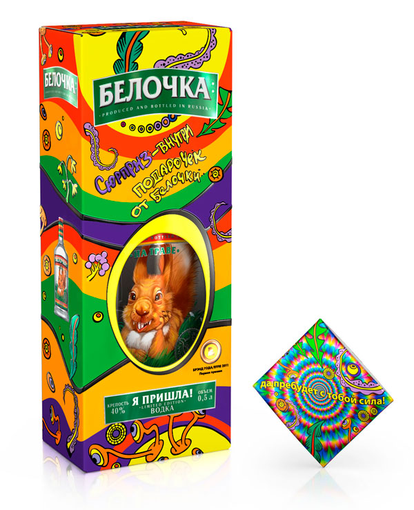 В апреле 2013 года на полках российских магазинов появился ограниченный тираж водки «Белочка: я пришла!» в особенной, подарочной, упаковке.