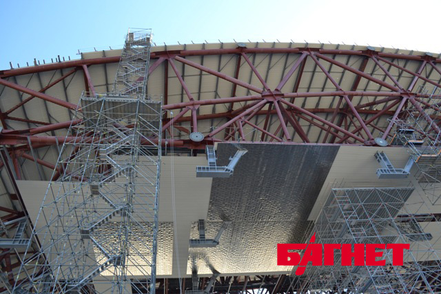 Сам же свод состоит из сложных стальных конструкций, которые по краям будут обшиты специальными материалами:со внутренней стороны - слоем мембран, с внешней - жестким металлическим покрытием. Между ними будут установлены все системы конфайнмента, в том числе и вентиляция.