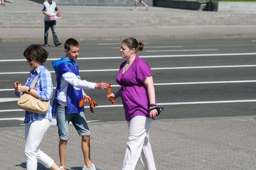 Как сообщает пресс-служба «Молодых регионов», одновременно с другими участниками в России, Молдове, Беларуси, активисты «Молодых регионов» по традиции раздавали георгиевские ленточки прохожим в знак почитания погибших во время Великой Отечественной войны.