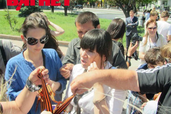 Как в Симферополе раздавали георгиевские ленточки (ФОТО)