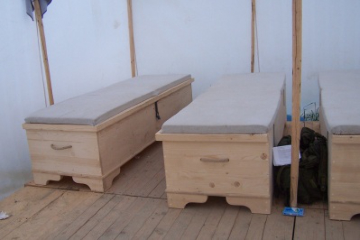 Гостям предлагают спать в палатках на деревянных сундуках