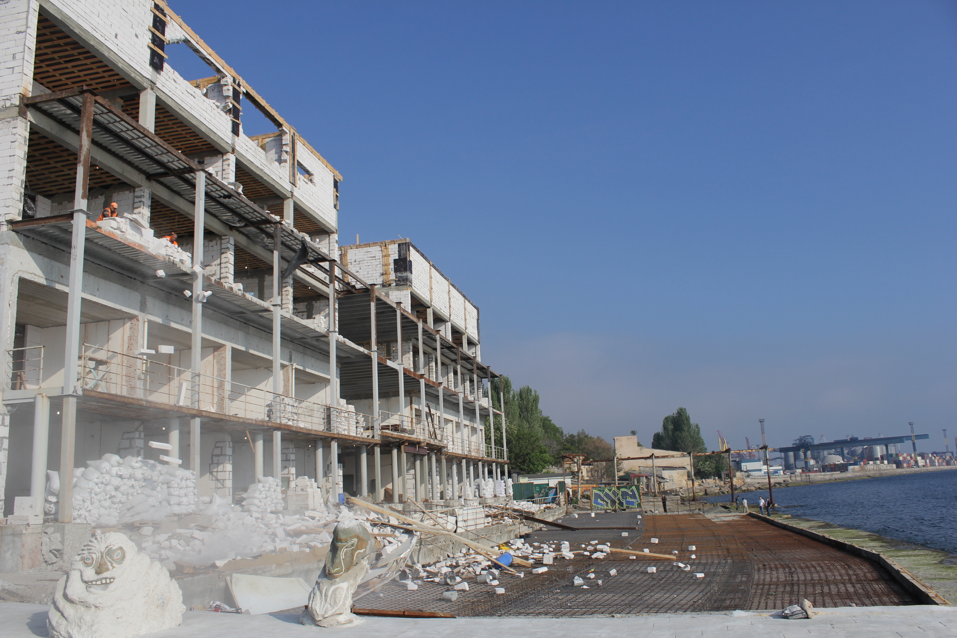 Сегодня ночью в Одессе группа людей под предводительством мэра Алексея Костусева в буквальном смысле слова разгромила 5-ти этажный (!) дом, так называемый «Подводный охотник», который незаконно, по крайней мере, по мнению Костусева, строится на Ланжероне, одном из лучших пляжей Одессы.