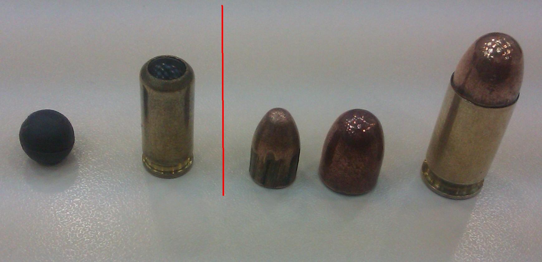 Слева - пули для травматического оружия, справа - для огнестрельного