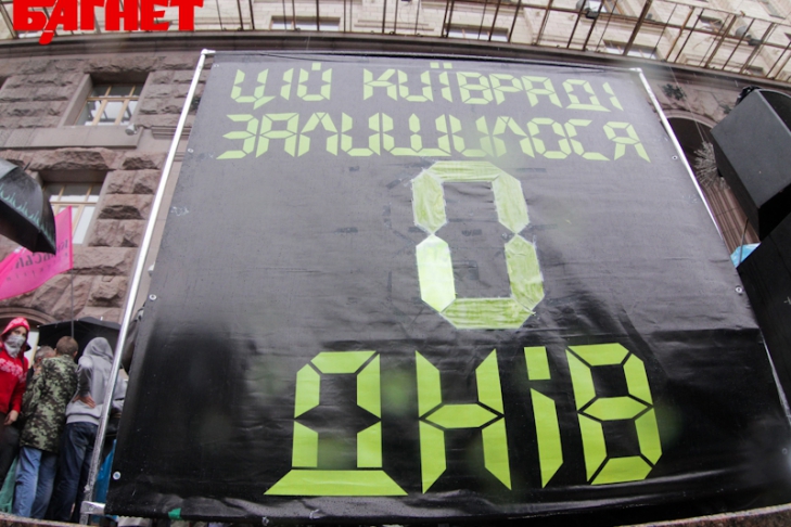 Участники акции держали плакаты с надписями «Киев принадлежит киевлянам», «Режим - прочь!». Также активистам акции удалось прикрепить плакат с надписью «Закрыто до выборов» под бронзовой табличкой «Київська міська Рада».