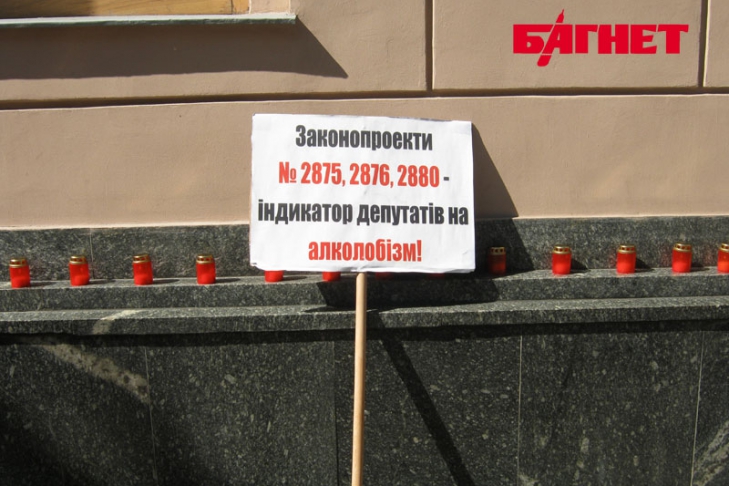 Активисты коалиции общественных организаций «За трезвую Украину» провели пикет у здания комитетов ВР на улице Грушевского в Киеве. Общественники предложили депутатам выбор: дешевое пиво либо свеча жизни, символизирующая шанс на лечение для сотен тяжелобольных детей. Участники акции требуют рассмотреть пакет законопроектов, направленных на постепенное повышение акциза на пиво. Деньги, которые будут получены вследствие этих новаций, хотят направить на строительство детских больниц.