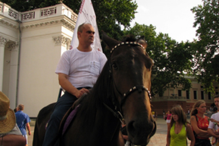 Но скандалы, похоже, не закончились. Вчера, 15 июля, лидер одесской общественной организации ЗУБР Валентин Дорошенко на коне и со шпагой прибыл на дуэль с мэром города Эдуардом Гурвицем.