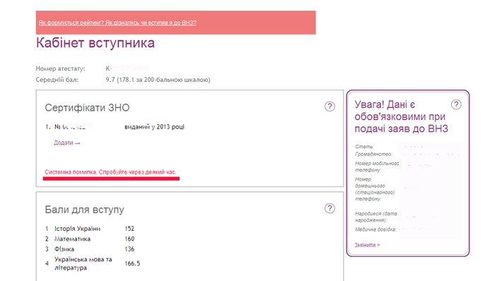 Статистика, которую ежедневно публикуют на официальном сайте Минобразования, показывает, что отечественные абитуриенты не очень-то доверяют системе электронного поступления. Так, на момент написания статьи вузы зарегистрировали более 1 миллиона 400 тысяч заявлений. Из них только 380 тысяч было подано в электронном виде. Вероятно, дело не в компьютерной безграмотности нынешнего поколения, а в постоянных «глюках» системы электронного поступления. Выражаются они просто. На финальном этапе прохождения не самой короткой процедуры регистрации абитуриент получает сообщение о том, что его заявка не принята из-за системной ошибки, и рекомендация пройти все заново через некоторое время.