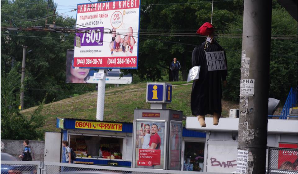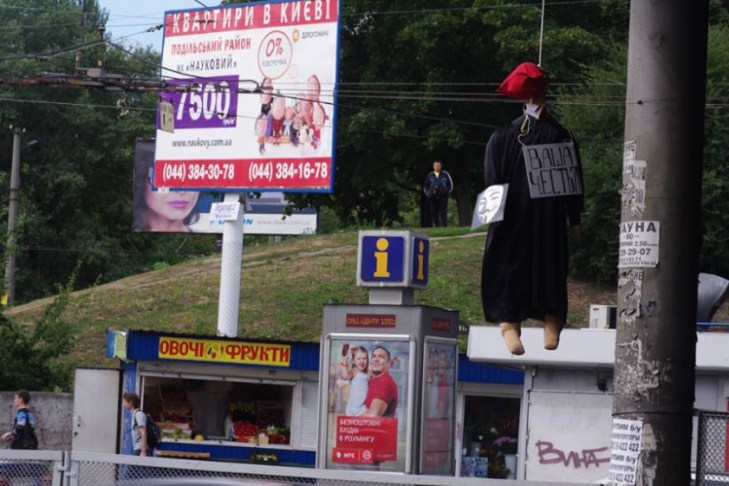 В Киеве на Индустриальном мосту повесили чучело судьи (ФОТО)