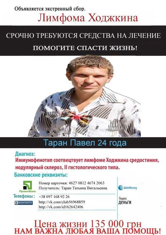 Помогите спасти молодого парня, сына, друга и просто хорошего человека, Павла Тарана!