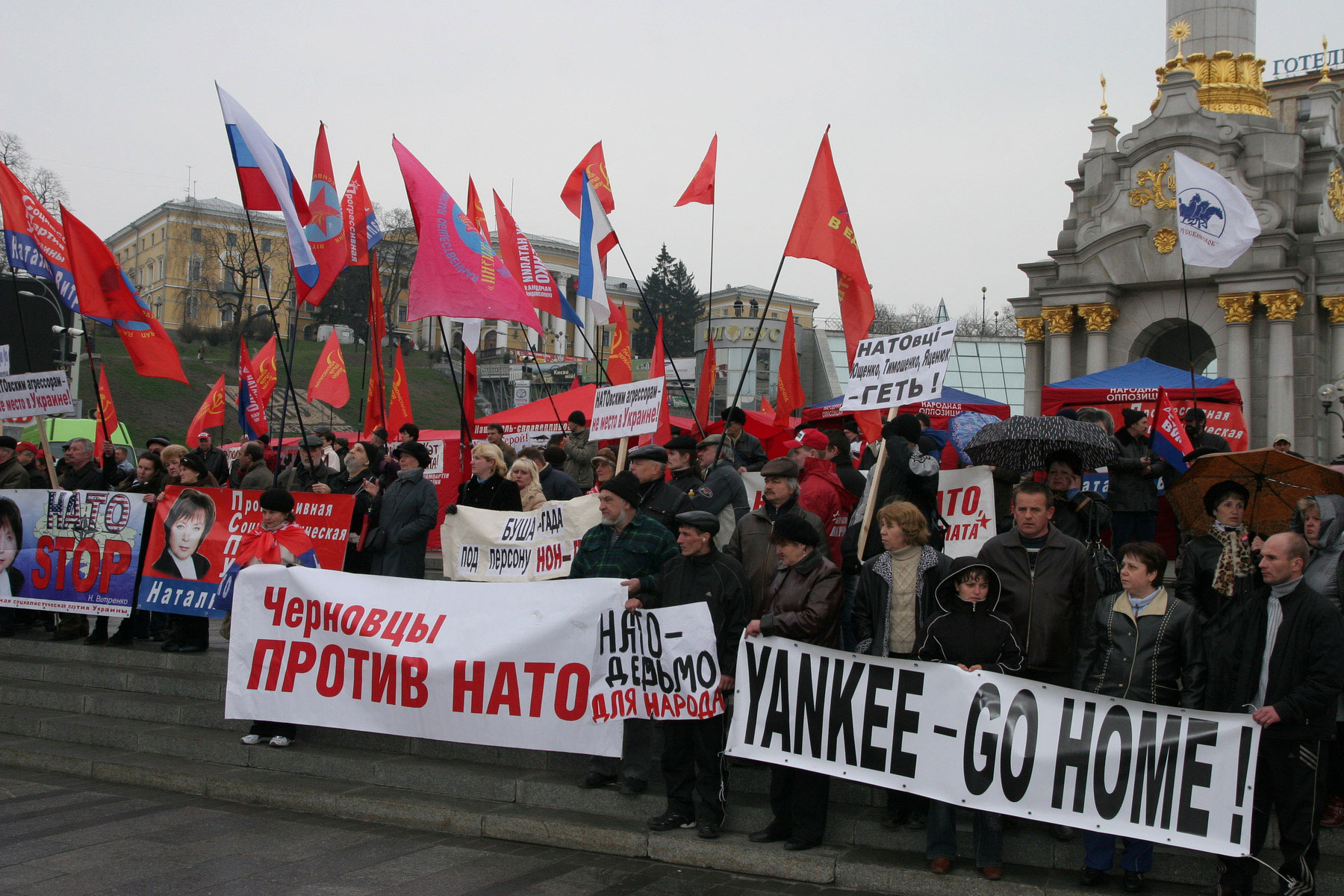 Акция протеста началась еще вчера, и, по словам митингующих, будет продолжаться до четвертого апреля. Приверженцы коммунистов и социалистов надеются, что президент Америки их услышит и поскорее уедет домой, желательно прихватив с собой Ющенко и весь президентский секретариат.