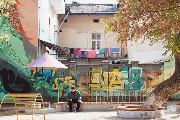 Детская площадка в историчеком районе Львова, которую реконструировали в рамках проекта «Ревіталізація Підзамче» — c граффити, песчаным бассейном и каруселями – идеальное место для прогулки с ребенком.