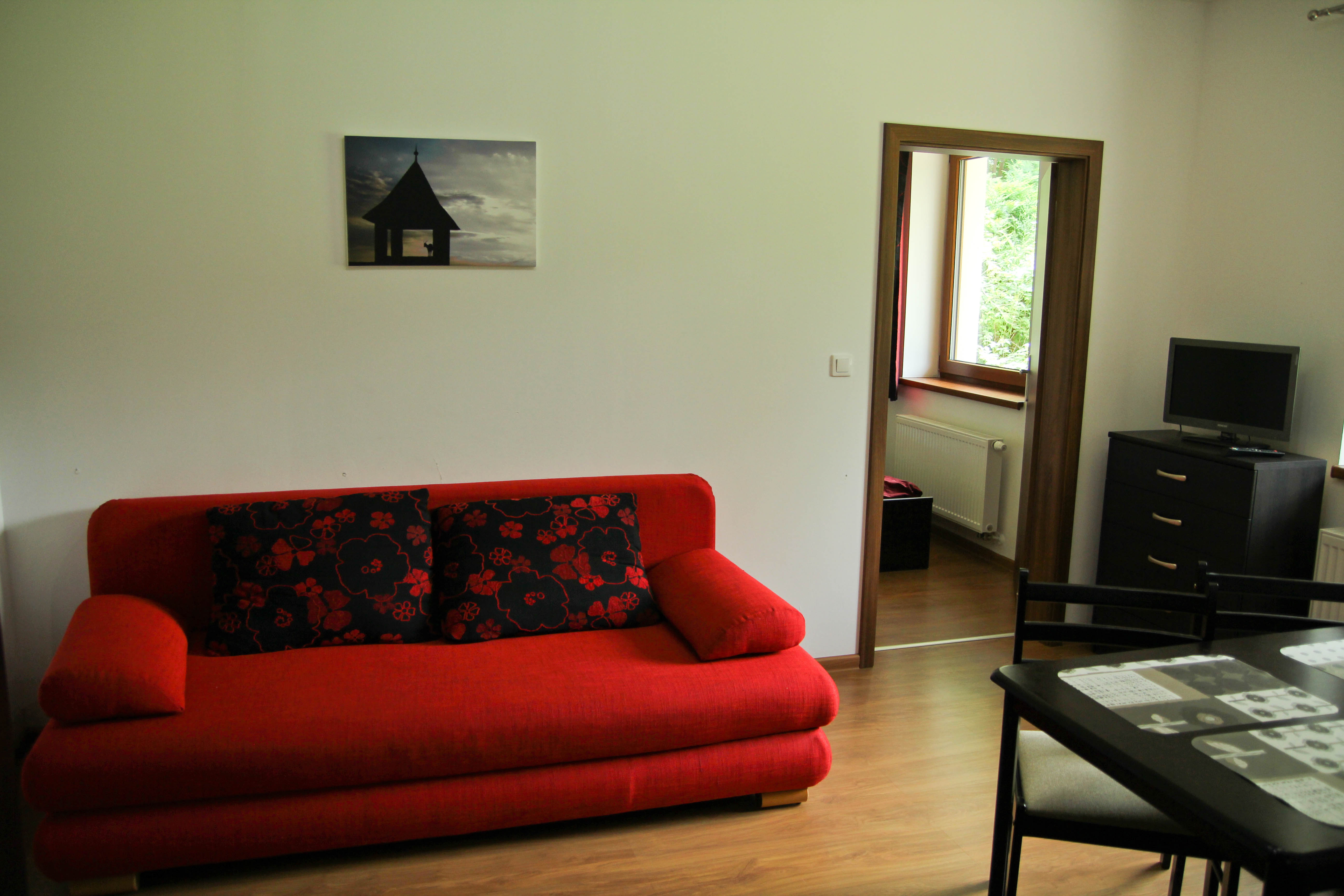 В номере Студио размещены две односпальные кровати, стол, два стула, HD-телевизор, также имеется и ванная комната. Такой номер идеально подойдет людям, которые не хотят готовить самостоятельно, а желают открыть для себя традиционную кухню региона Липтов.