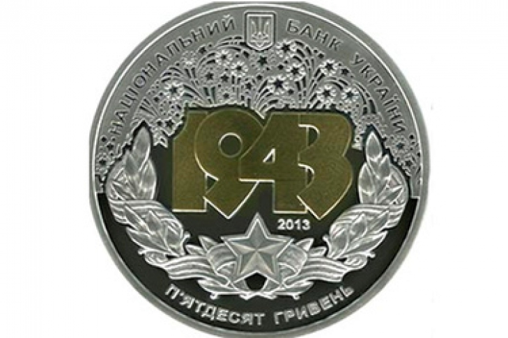 В честь 70-летия освобождения Киева Нацбанк отчеканил две новые монеты — 50-гривневку из серебра с позолотой, весом около 500 г (тираж 1000 шт., коллекционная цена — 6760 грн) и ее бюджетный вариант — 5-гривневку (тираж 30 тыс. шт., цена 25 грн).